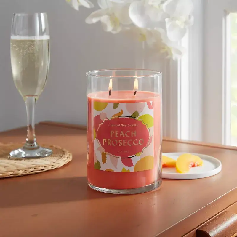 Experience the luxurious scent of Peach Prosecco with this 21.5oz lidded glass jar candle. Featuring two wicks for even burn and long-lasting fragrance, it creates a warm, inviting atmosphere in any room. Perfect for relaxing evenings or gifting. Don’t miss our special offer—bring elegance and cozy vibes to your home today!